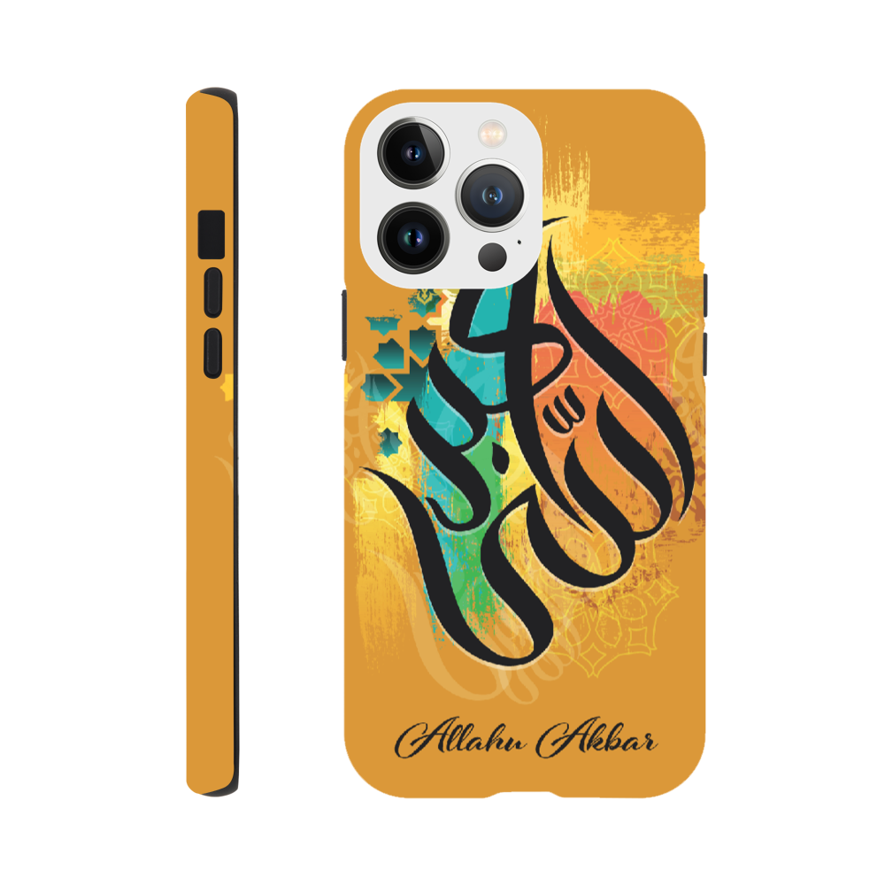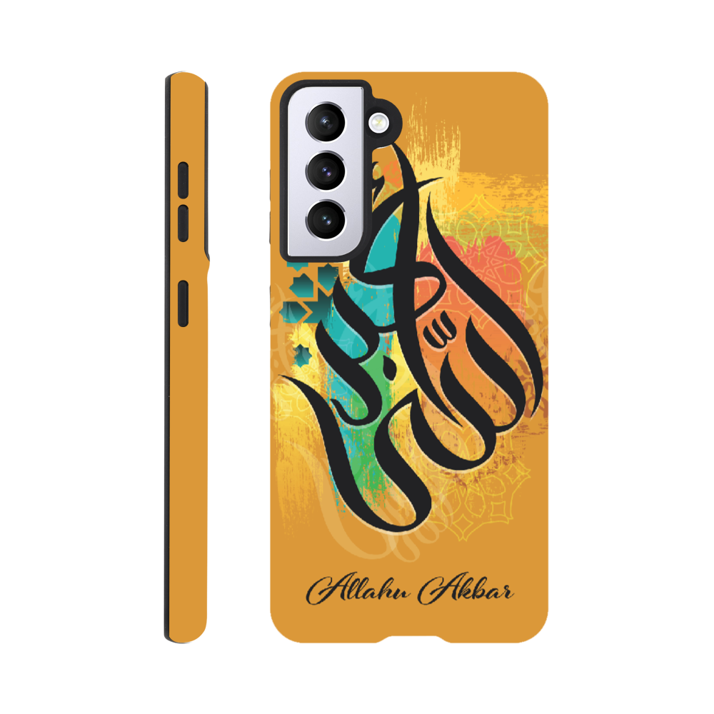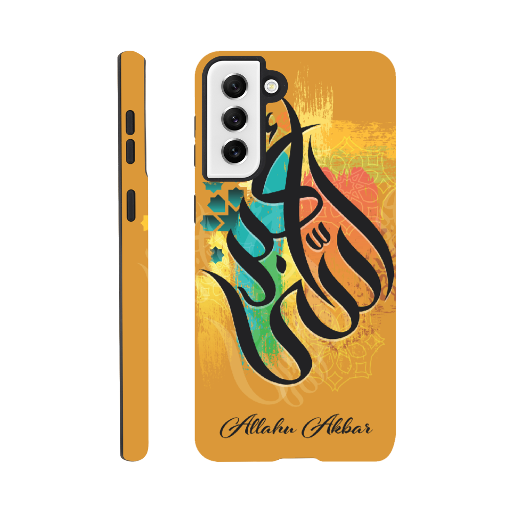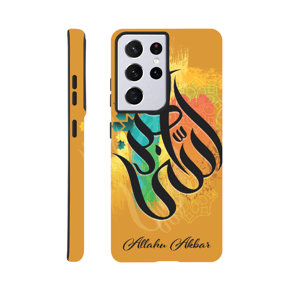 Allahu Akbar in Golden background with beautiful Islamic Arabic calligraphy. 'Allahu Akbar' translates to mean “God is the greatest,” which is an Arabic phrase frequently used by over 1 billion Muslims around the world. The phrase has a very significant meaning for Muslims and is often used as a call to prayer.