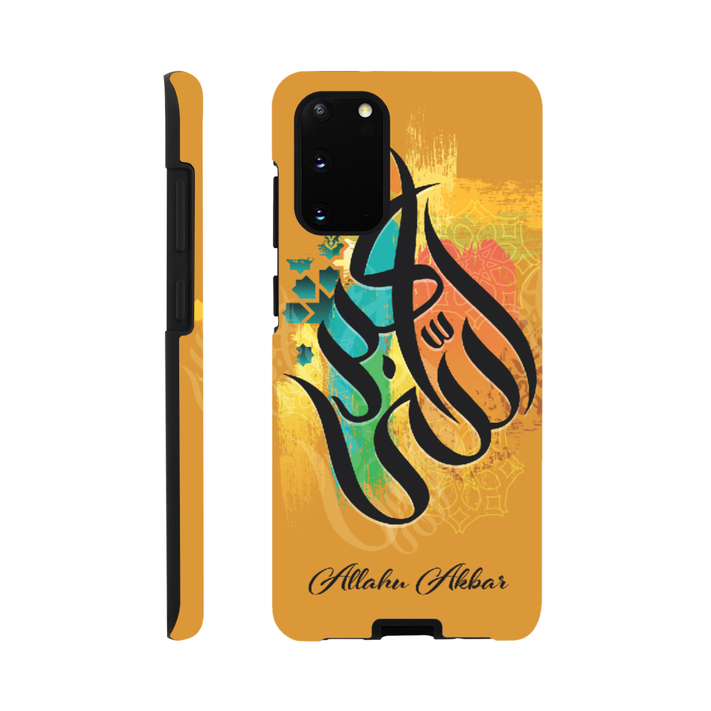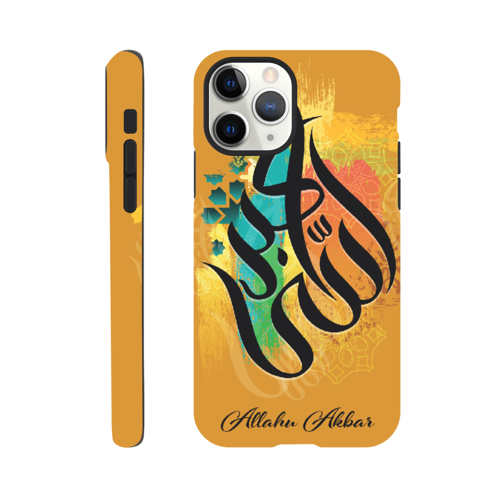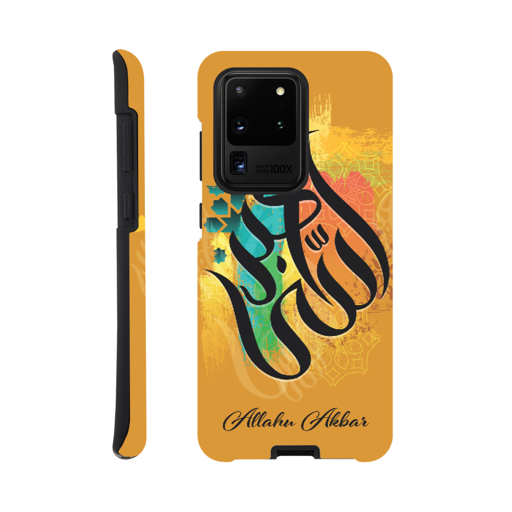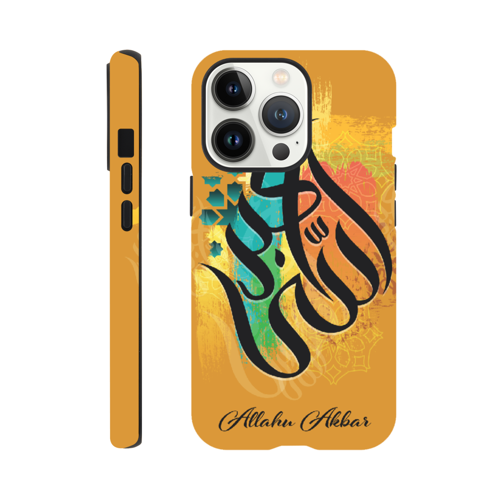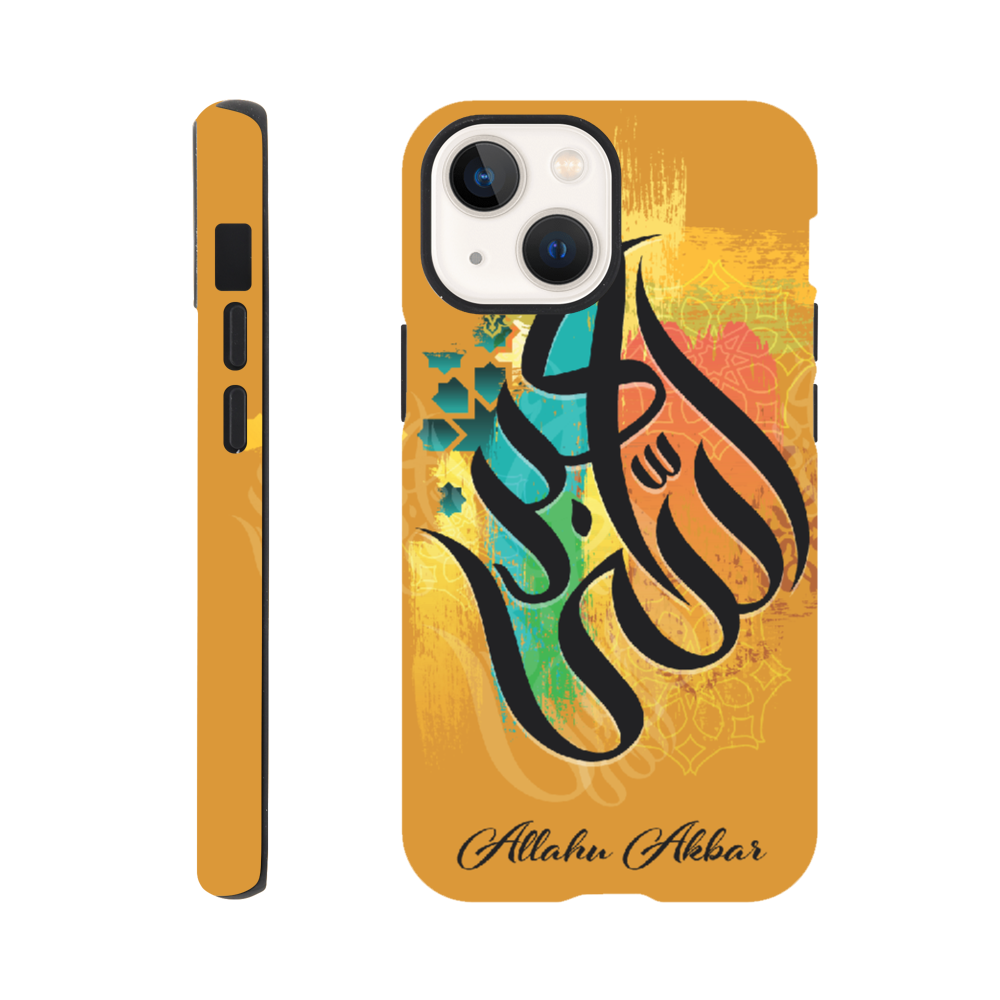 Allahu Akbar in Golden background with beautiful Islamic Arabic calligraphy. 'Allahu Akbar' translates to mean “God is the greatest,” which is an Arabic phrase frequently used by over 1 billion Muslims around the world. The phrase has a very significant meaning for Muslims and is often used as a call to prayer.