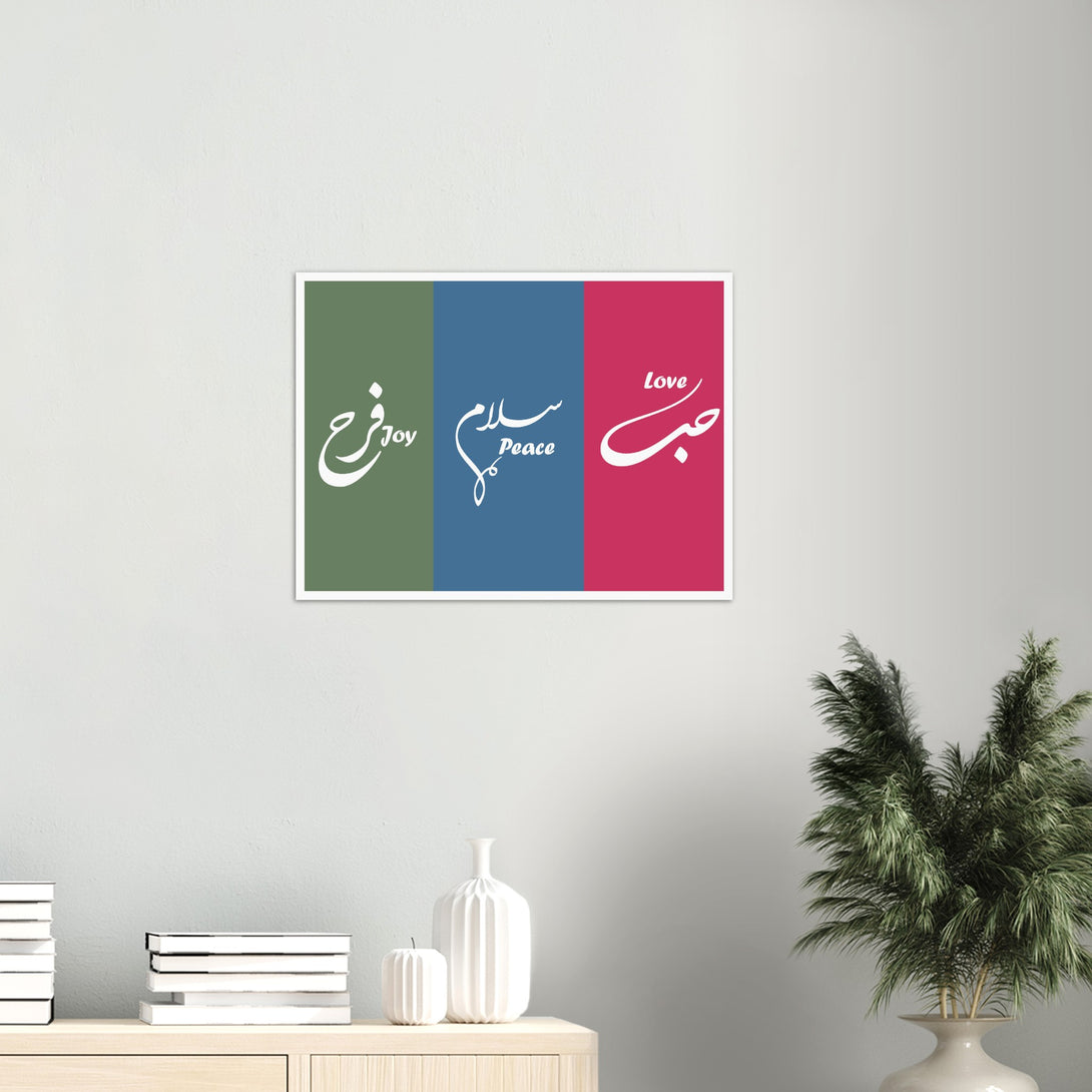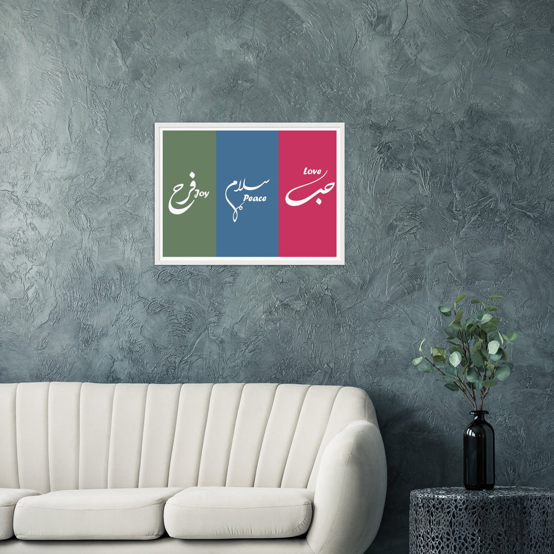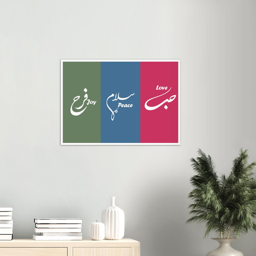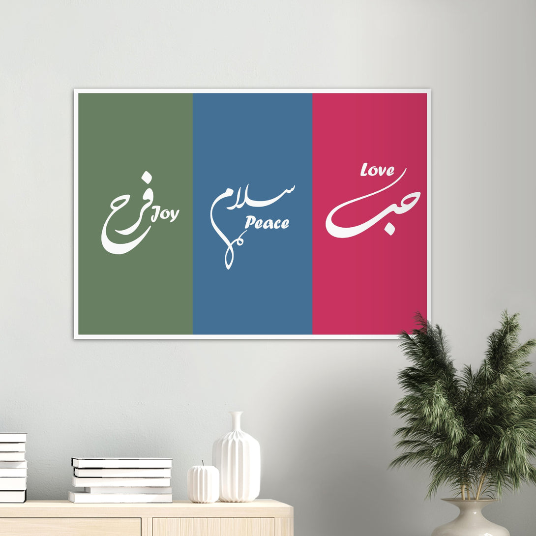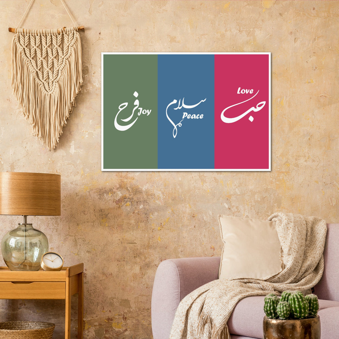 Love, Peace and Joy Arabic Calligraphy Poster
