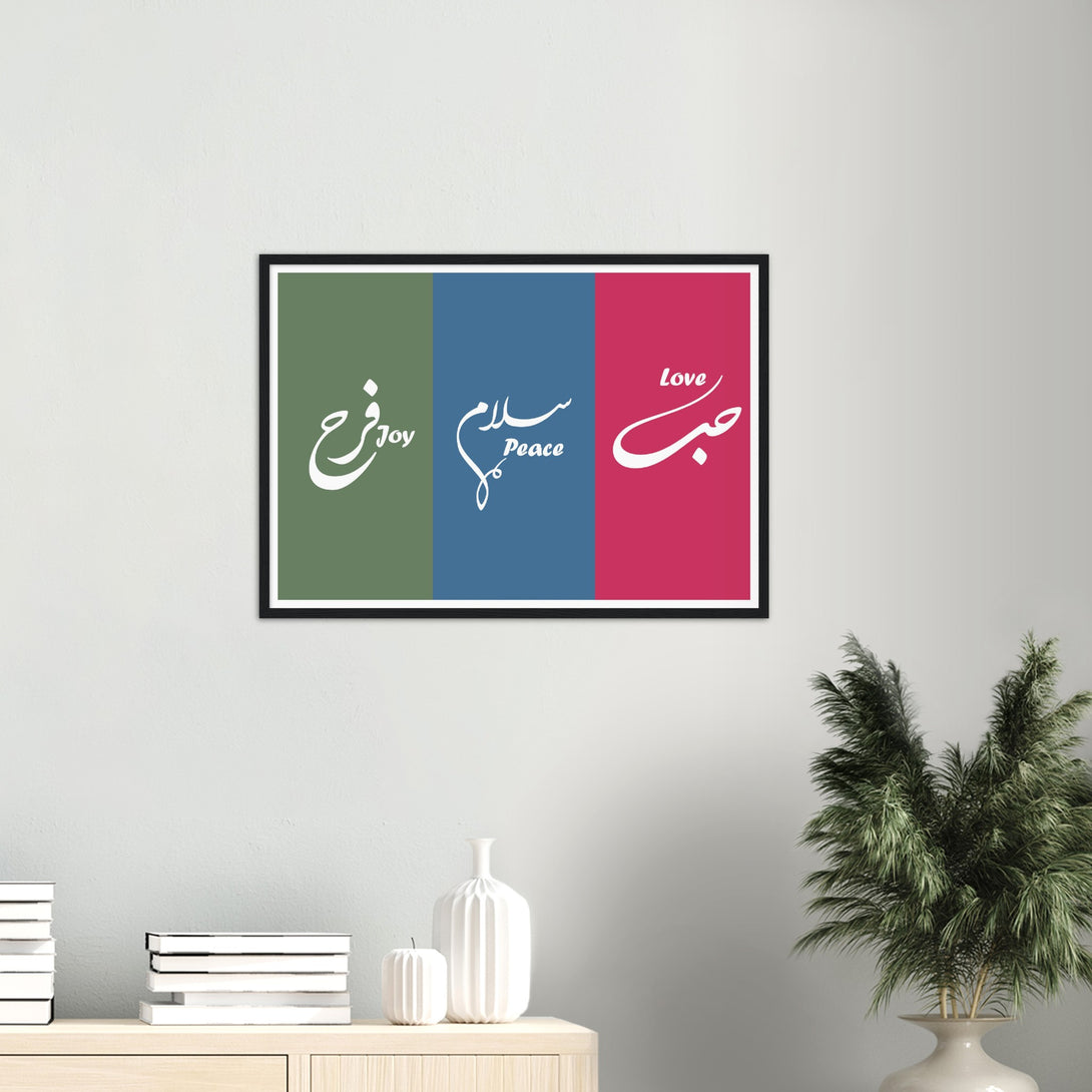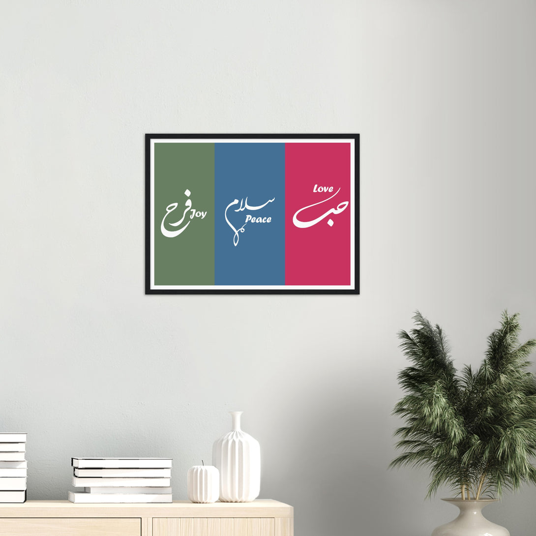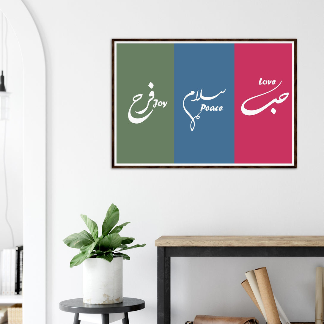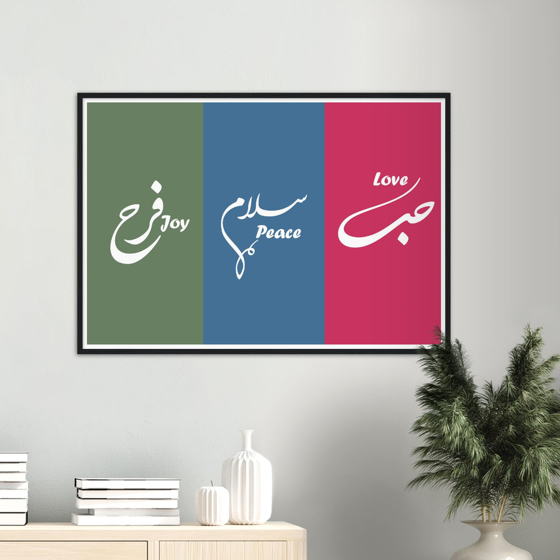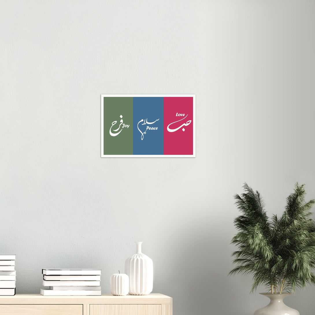 Love, Peace and Joy Arabic Calligraphy Poster