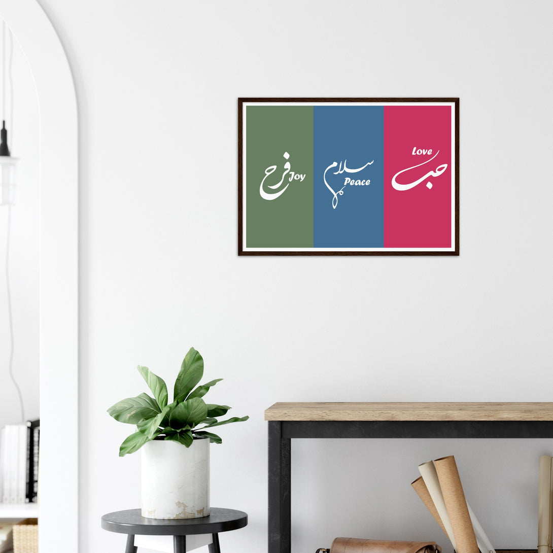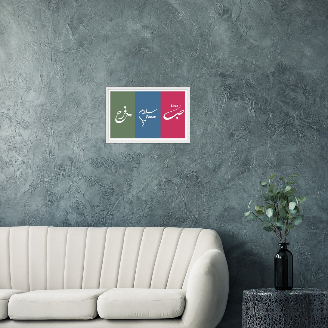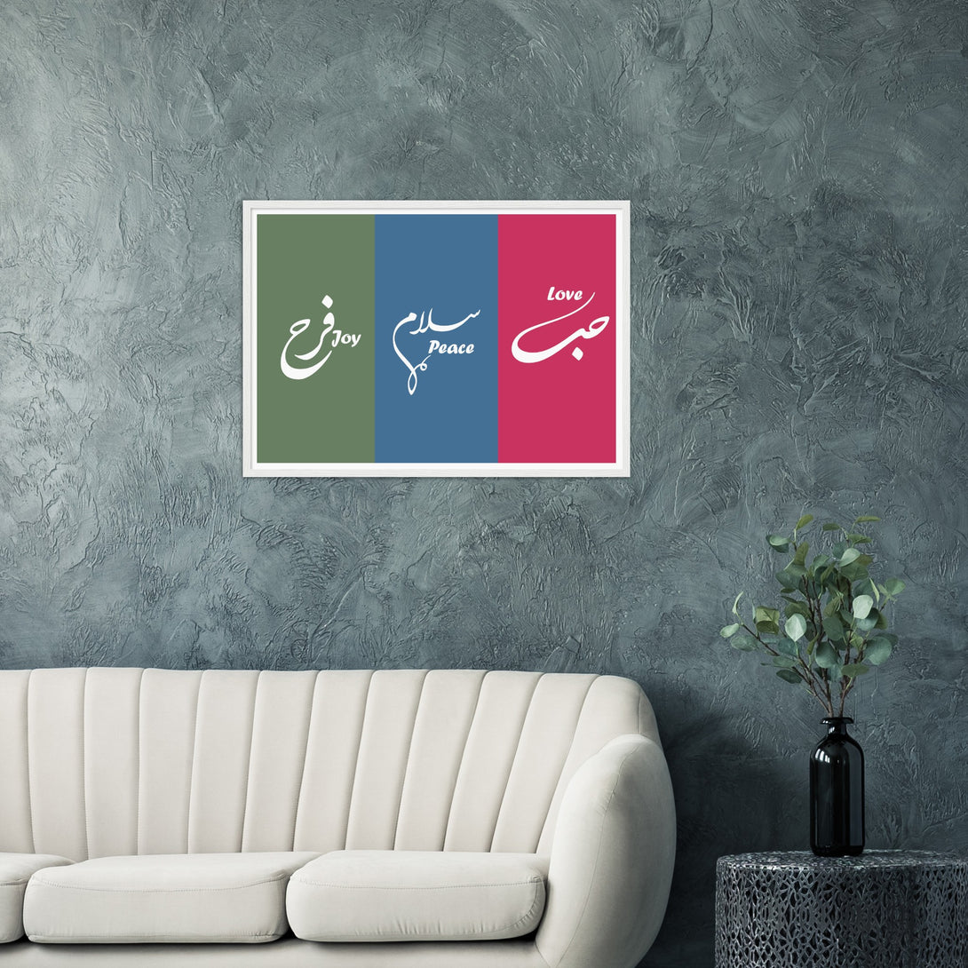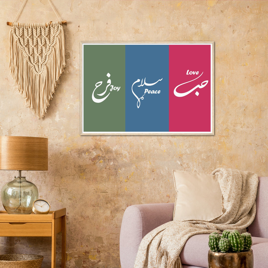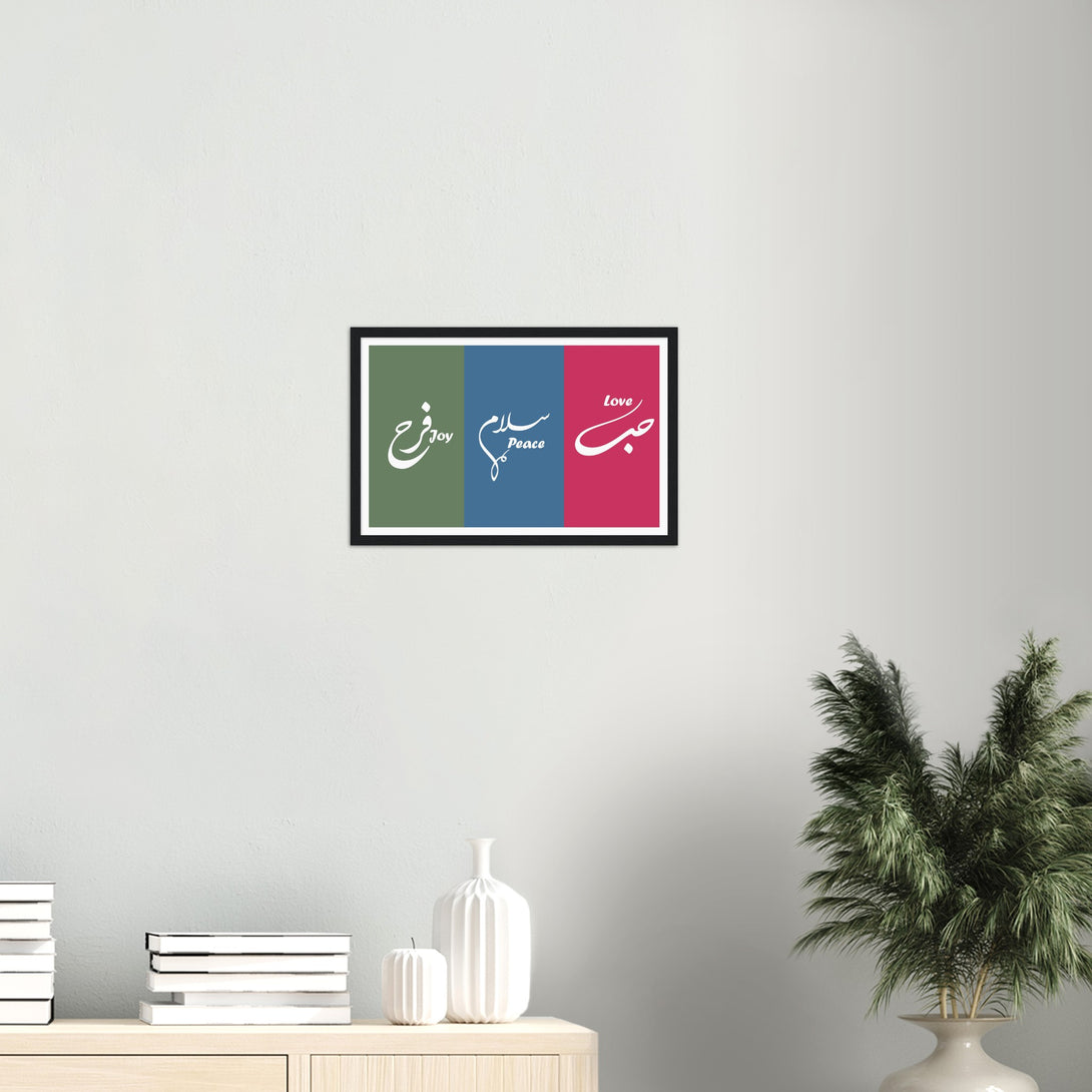 Love, Peace and Joy Arabic Calligraphy Poster