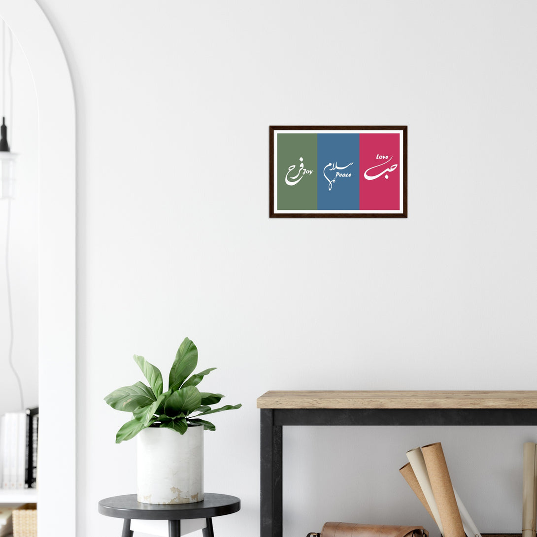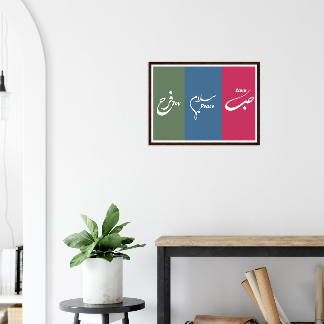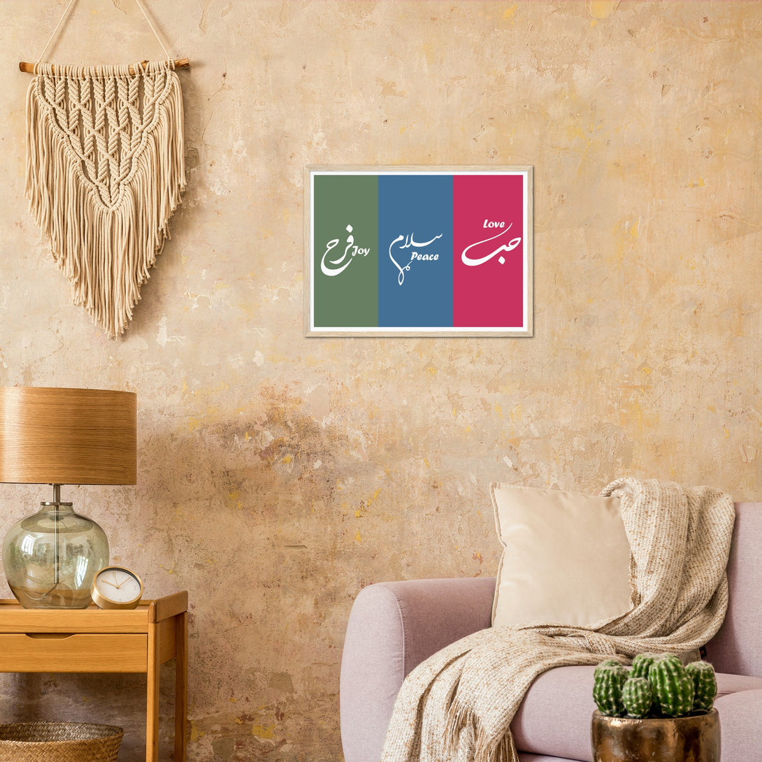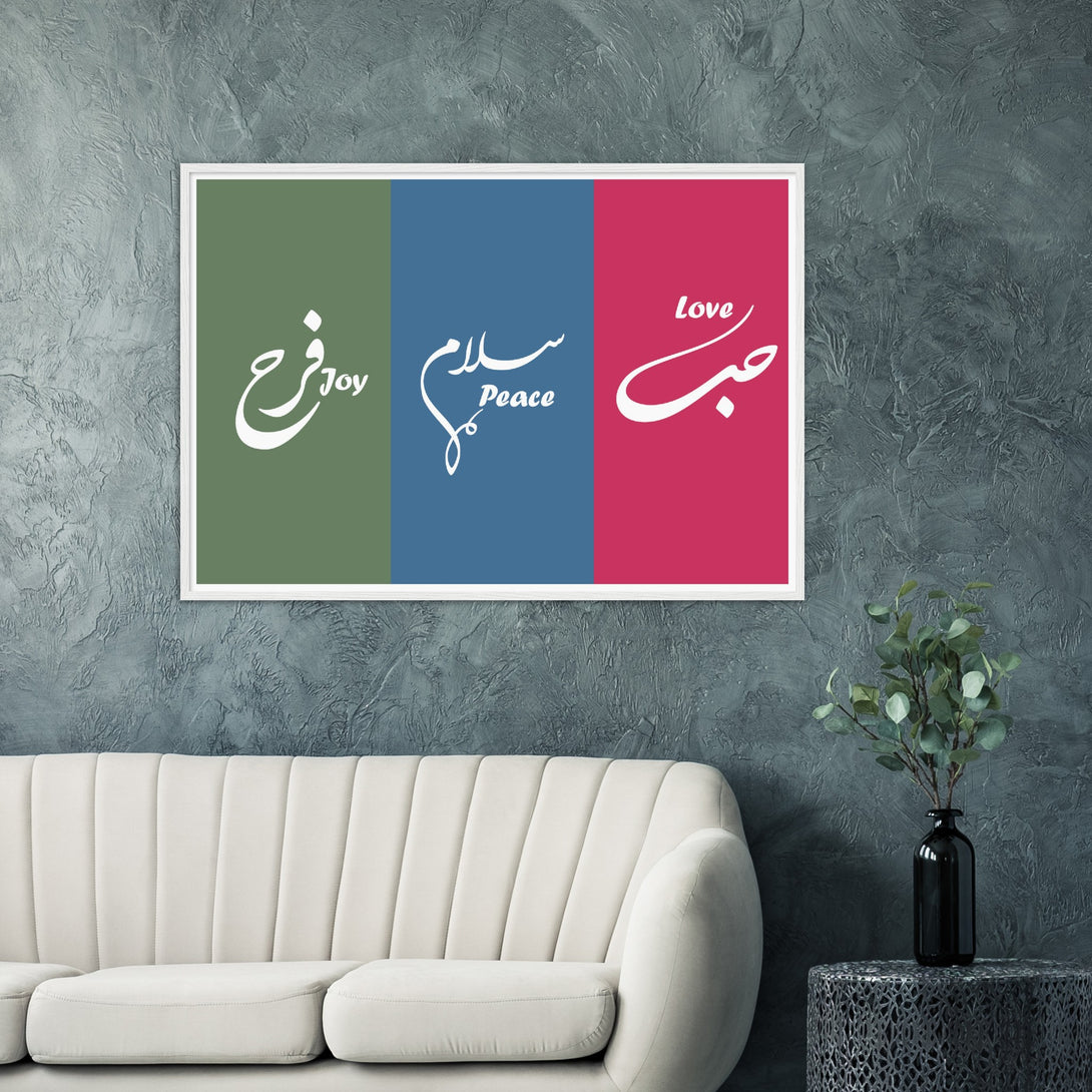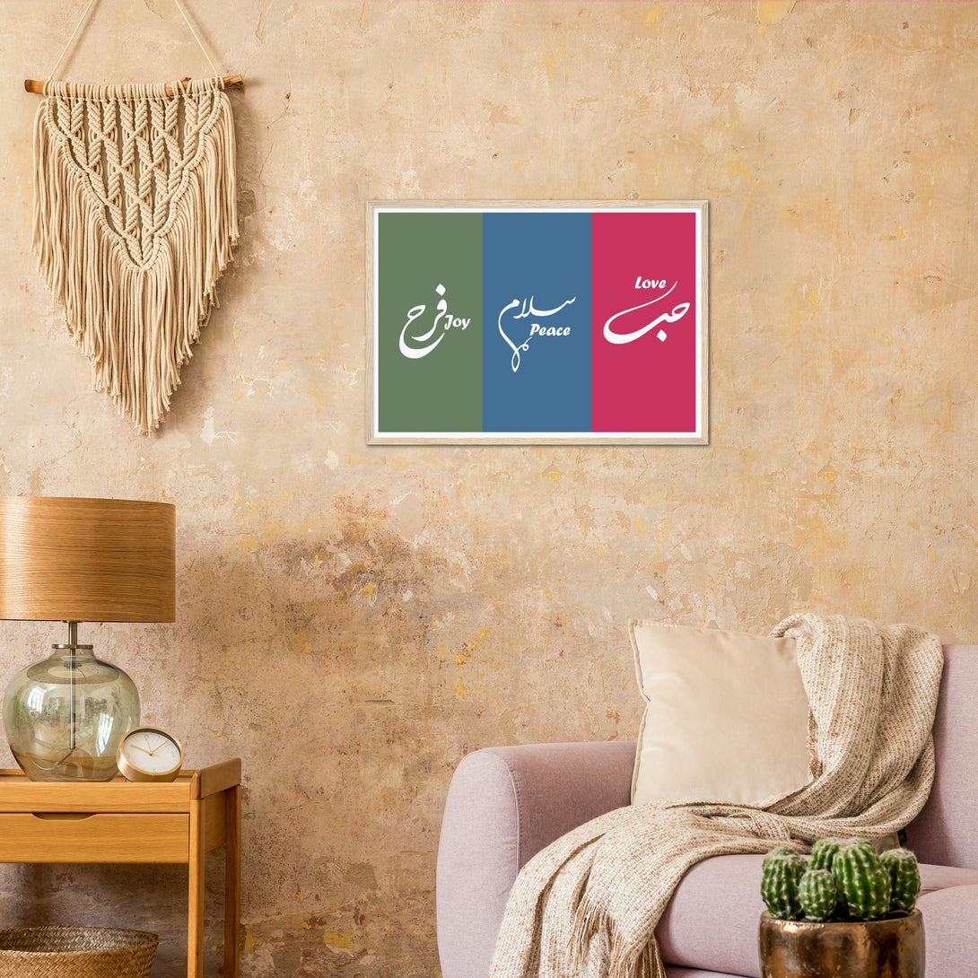 Love, Peace and Joy Arabic Calligraphy Poster