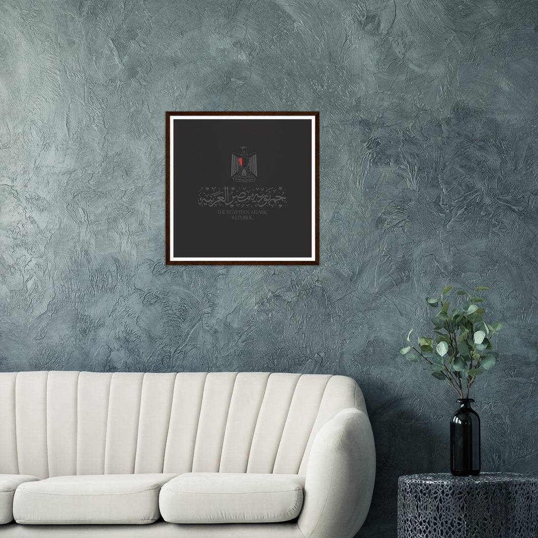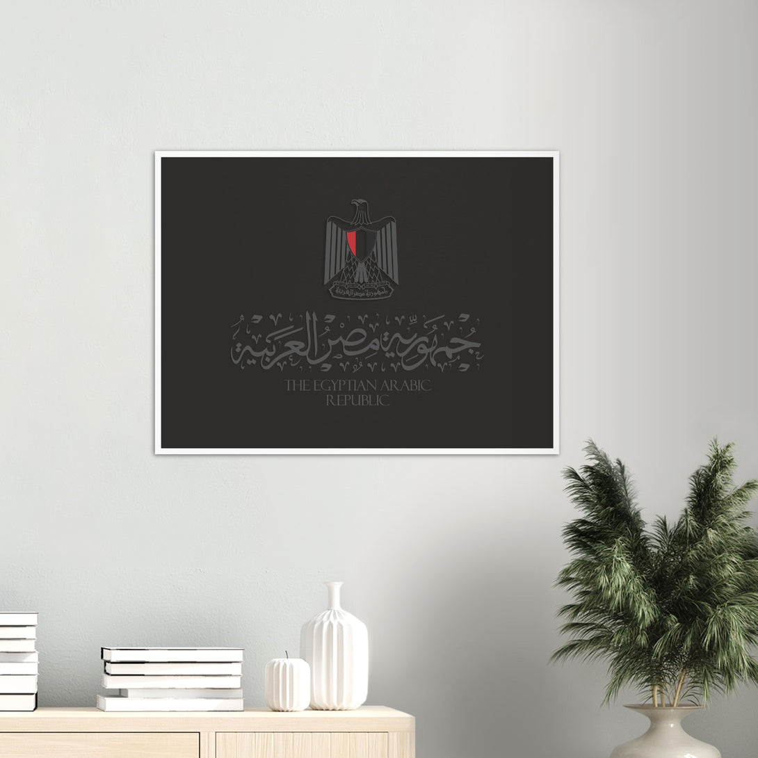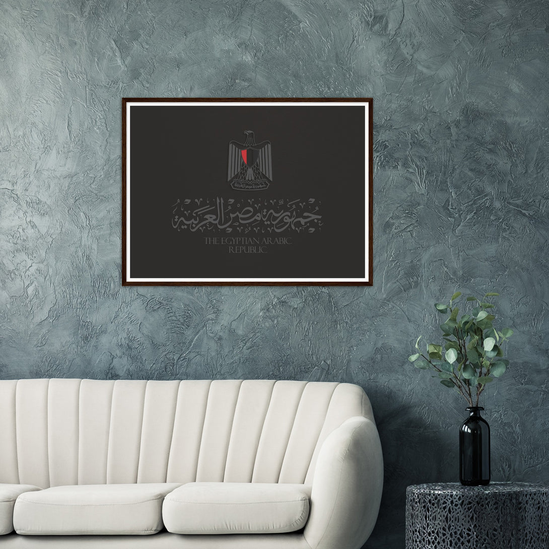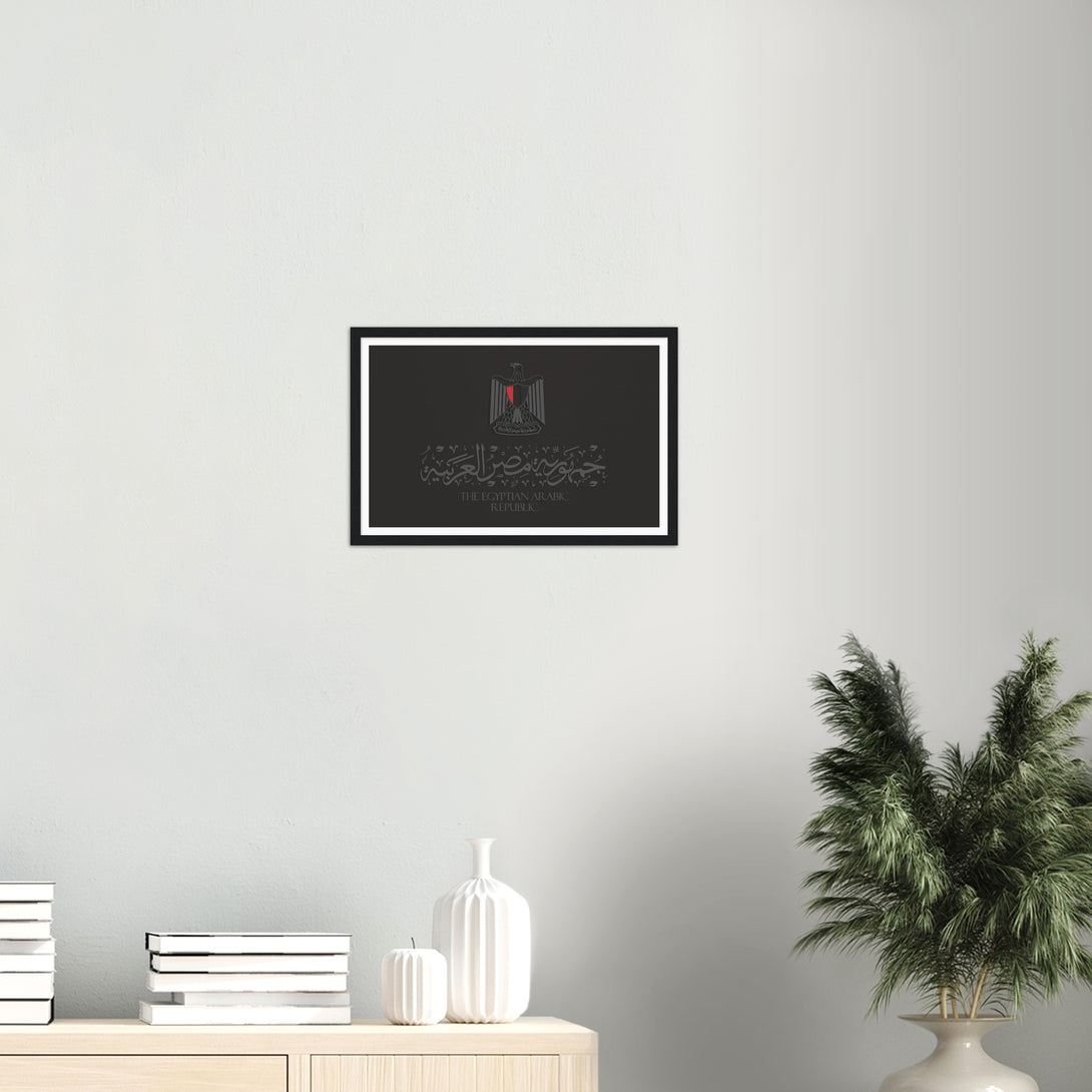 This is a special calligraphy poster of The Egyptian Arabic Republic text or Arabic font in Thuluth style with Eagle Flag of Egypt. You can buy it unframed or framed .