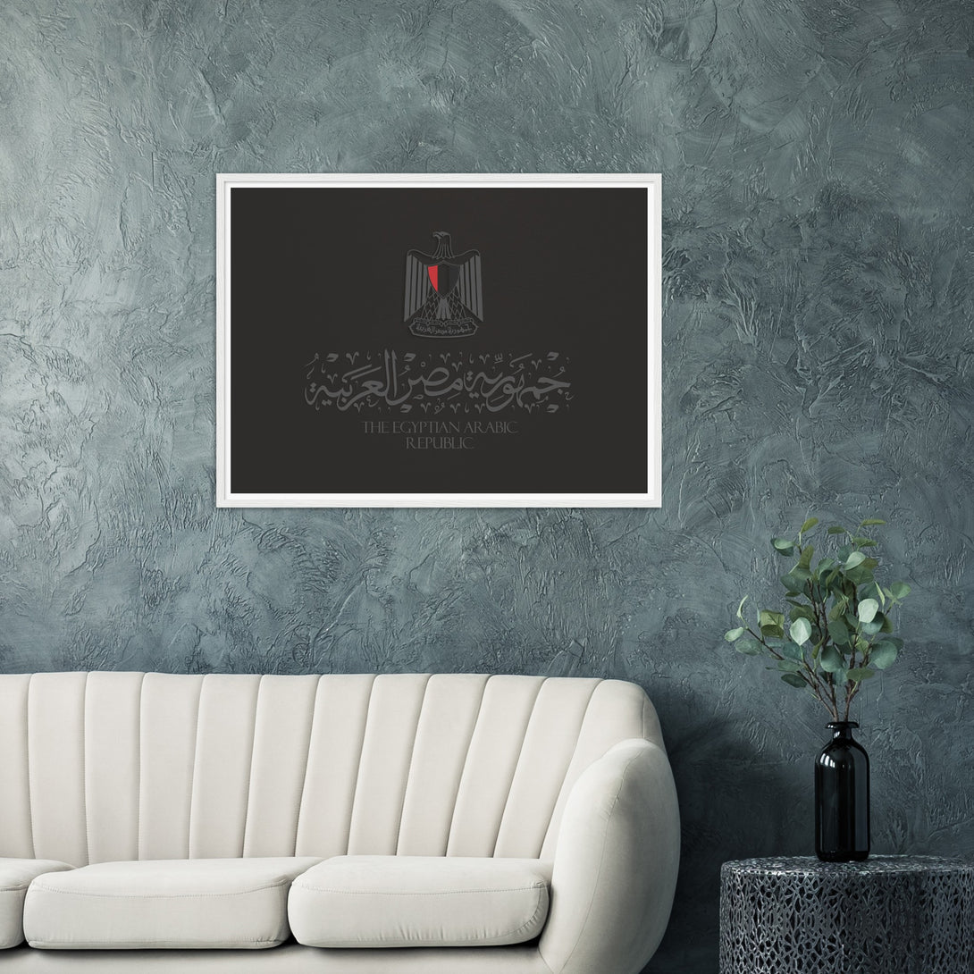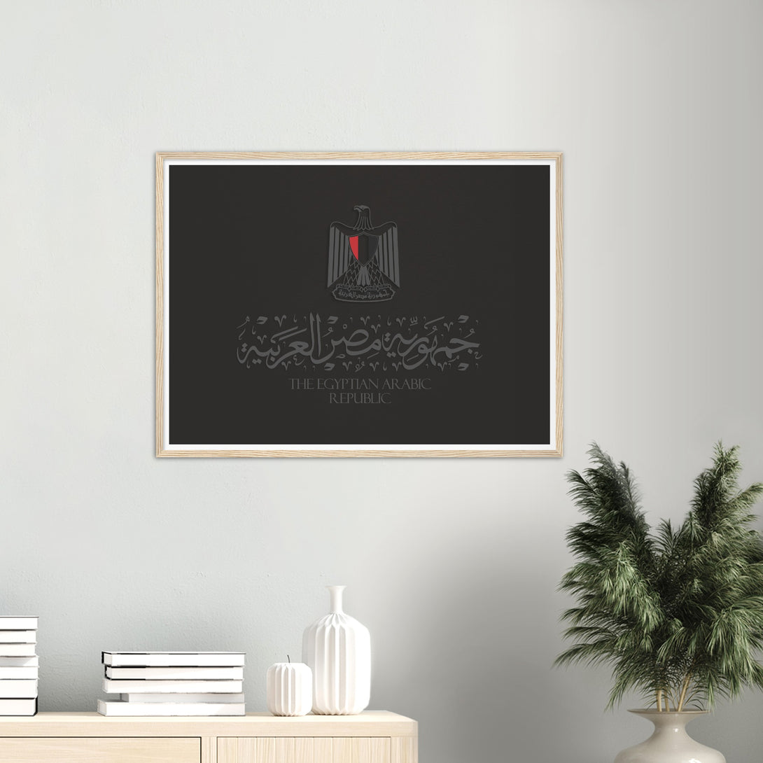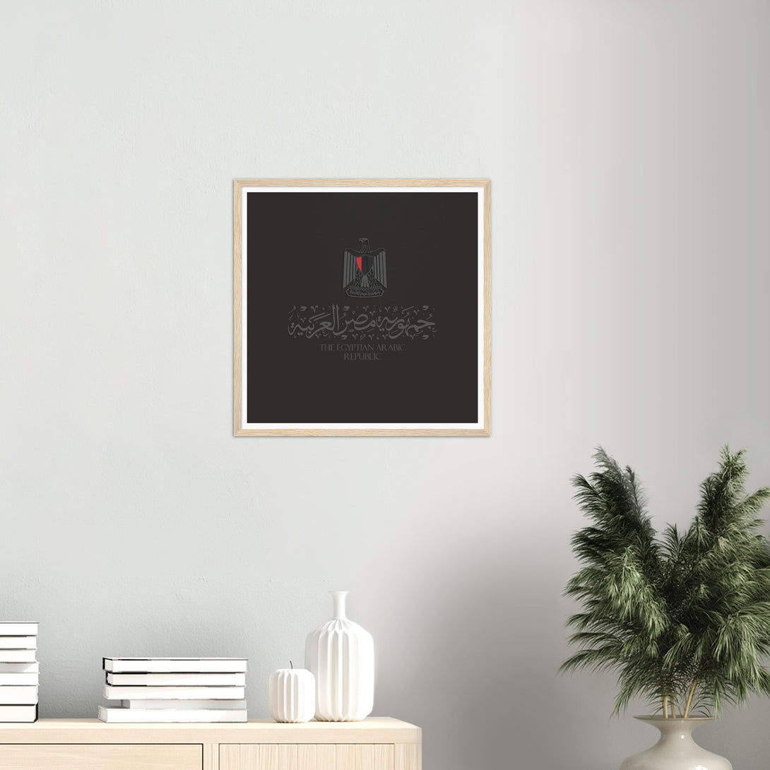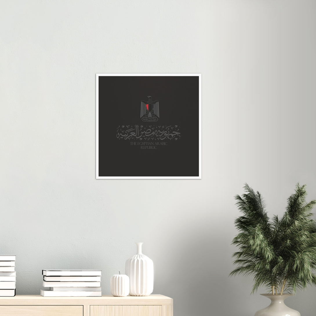 This is a special calligraphy poster of The Egyptian Arabic Republic text or Arabic font in Thuluth style with Eagle Flag of Egypt. You can buy it unframed or framed .