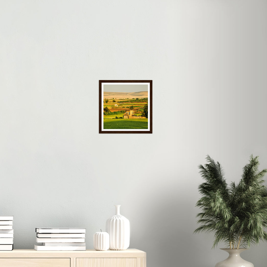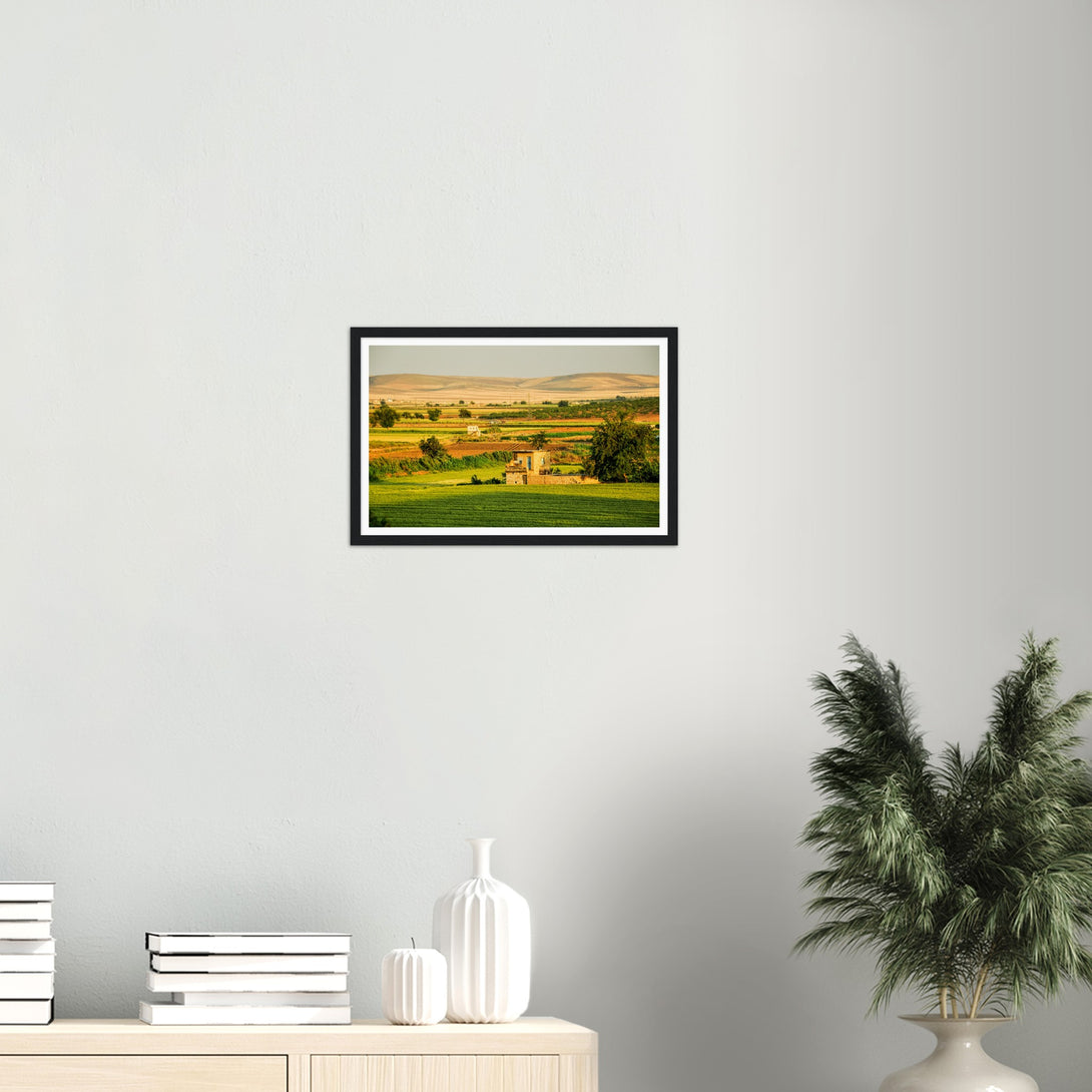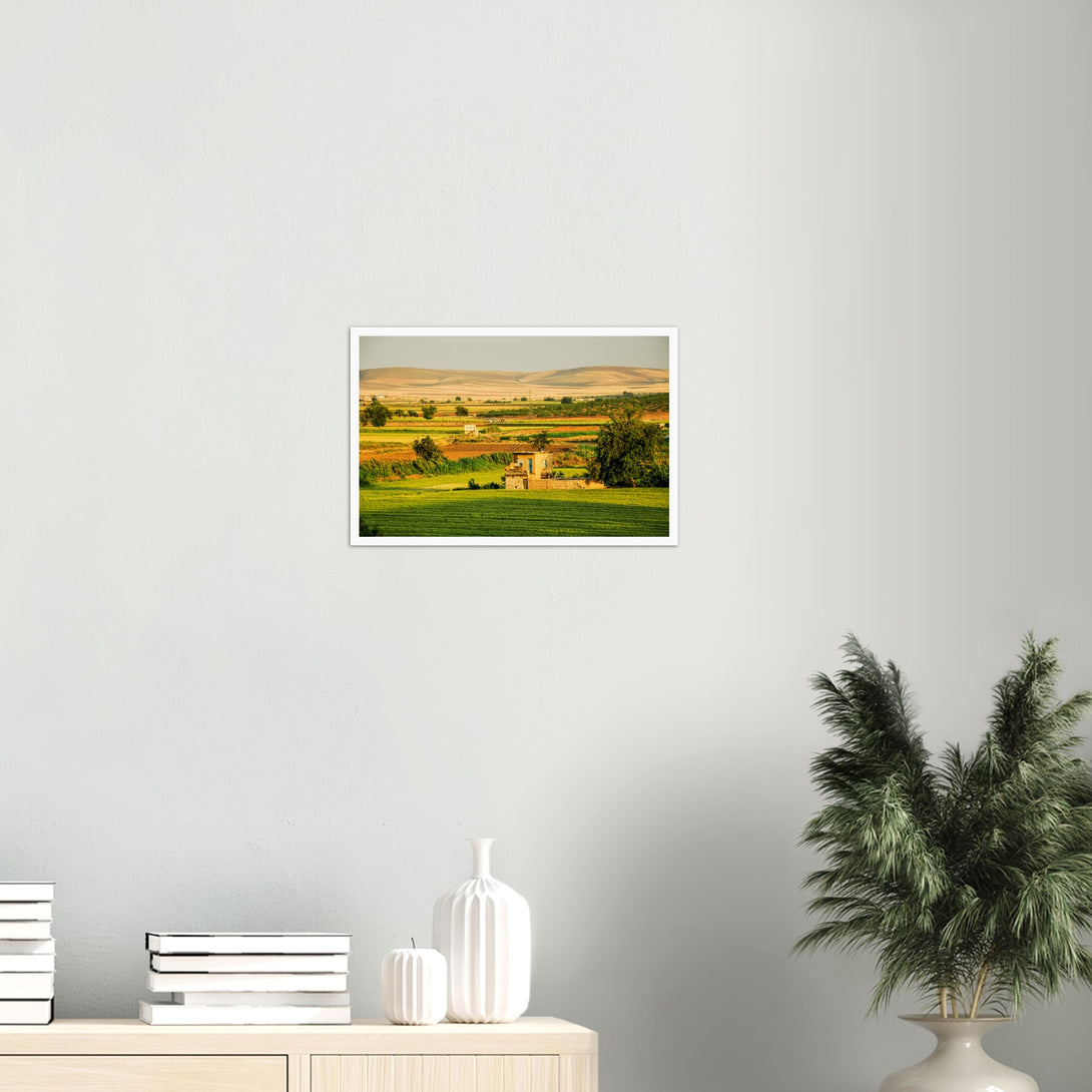 This poster shows the picturesque landscape in the western part of Syria. The colors are vibrant and the landscape is majestic. This poster is designed to be displayed on your wall, and would look great in any setting.